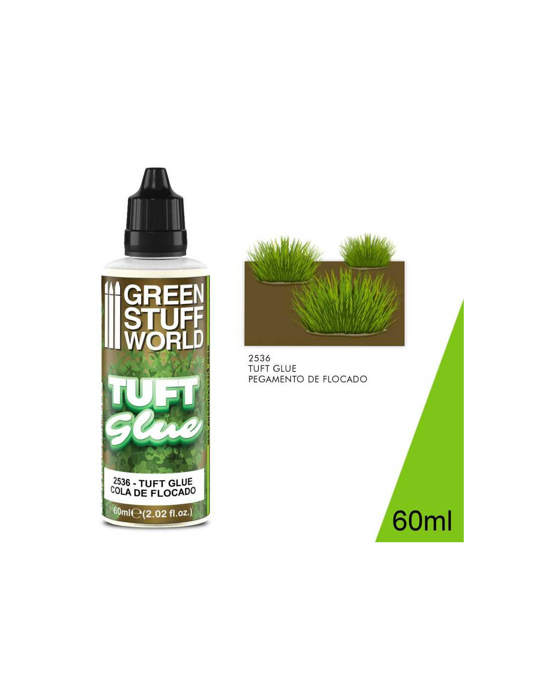 Water-soluble high-tack adhesive specifically designed to create auto-adhesive and repositionable model Static Grass or Field Grass. Helps flock maintain its shape and vertical position. Tufts can be pre-made or made in its final position. Transparent when dry.