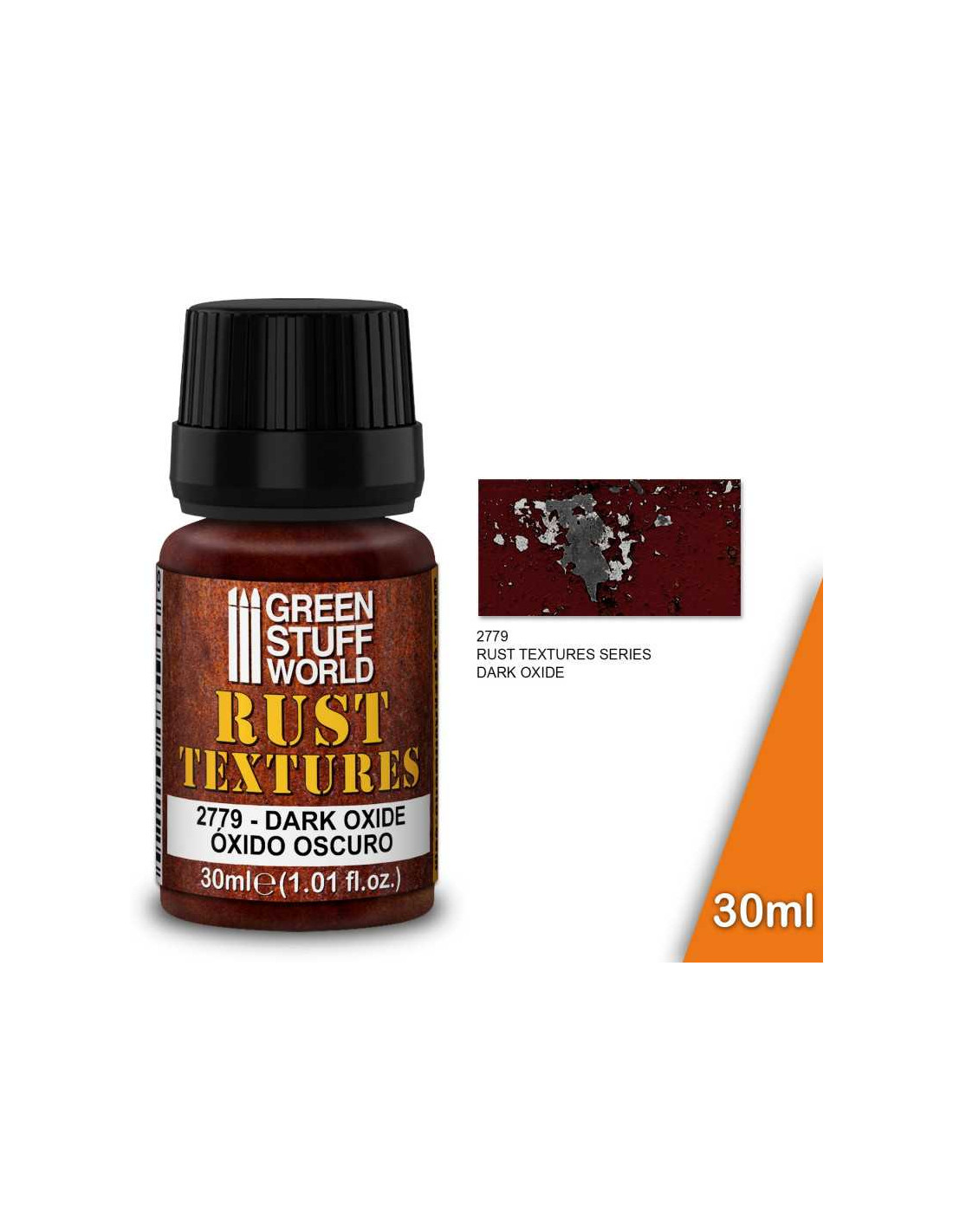 Acrylic texture for rust effects, developed to enhance and give volume texture and details to the scale models, creating extremely rusted surfaces. Texturizes and colors the surface, apply in layers of the desired thickness. It can be diluted with water or an acrylic thinner to modify its fluidity.